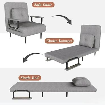 🛋️ Fotelja 3u1 – Fotelja • Ležaljka • Krevet (Siva) 🏠 Praktično i