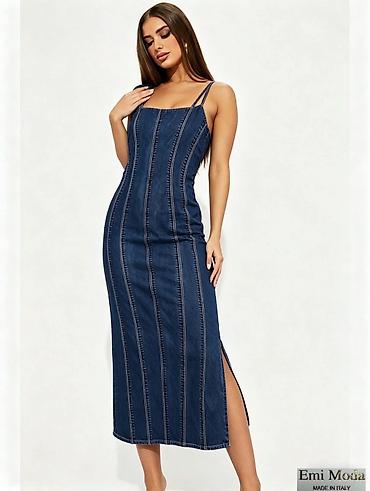 Ženska haljina – mini kroj, kobalt plava - Kroj: pripijena mini haljina sa blago zaobljenim donjim rubom, kratkim bočnim prorezima i blago dužom zadnjom stranom. - Rukavi: 3/4 dužine, uski. - Izre...