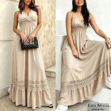 Haljina sa narukvicama, made in Italy. Univerzalna velicina za S,M,L - Boja: puder/bež. - Materijal: glatka, padajuća tkanina prijatna na dodir. - Kroj: midi dužina, blago nabrani struk sa lepršav...