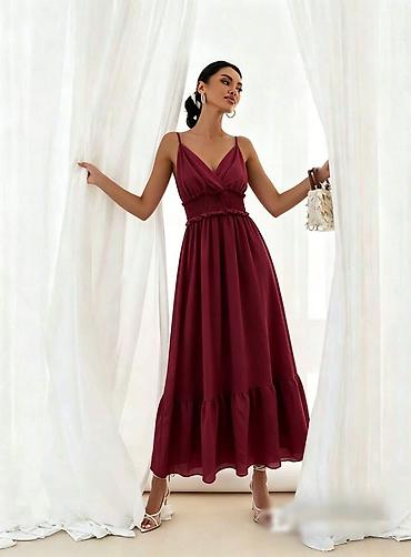 Elegantna duga haljina od baršuna – SHEIN - Boja: duboka bordo/merlot - Materijal: mekani baršun sa laganom postavom - Kroj: uska silueta, dužina do članaka - Rukavi: dugi - Izrez: kvadratni, ukra...