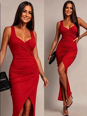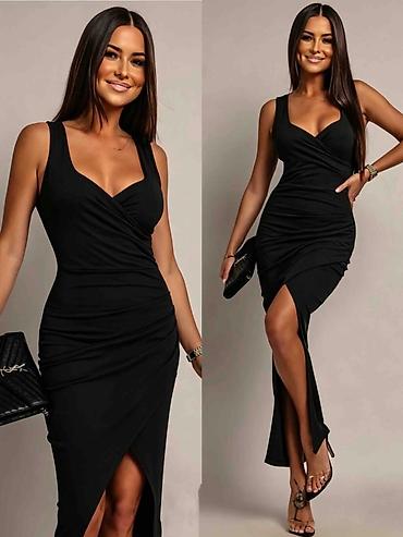 🔥Elegantna duga večernja haljina bez bretela - Kroj: uska silueta koja prati liniju tela, dugi ravni pad sa diskretnim šlepom - Izrez: asimetričan gornji deo sa preklopima/draperijom koji formiraj...