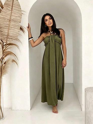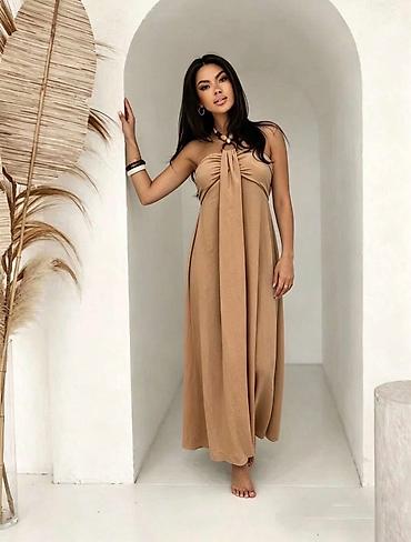 Letnja haljina na vezivanje oko vrata (halter), otvorenih leđa, midi dužine. Univerzalna veličina - Kroj: A-linija, midi - Izrez: halter, okrugao napred - Leđa: potpuno otvorena, dve trake za vez...