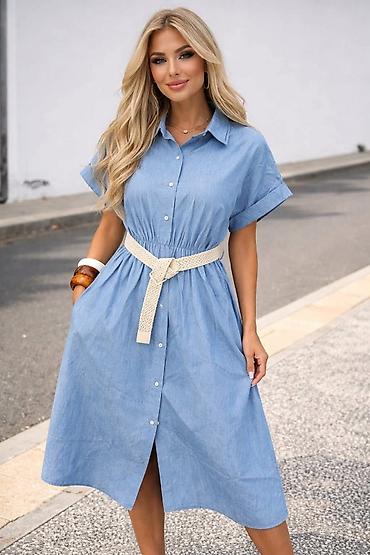 Elegantna ženska haljina s pojasom i plisiranom suknjom - Kroj: midi