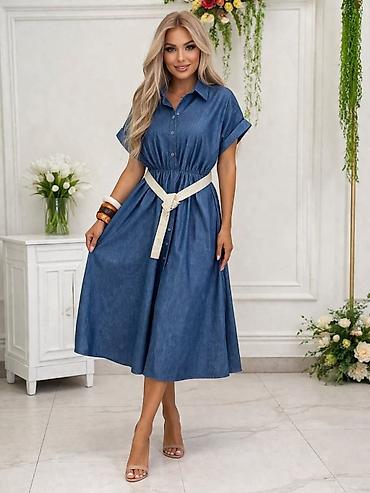 Elegantna ženska haljina s pojasom i plisiranom suknjom - Kroj: midi dužina, gornji deo blago strukiran, donji deo sa izrazitim plisom koji daje pokret i eleganciju - Rukavi: kratki, talasasti/vol...