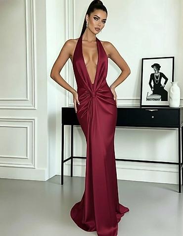 ✨Elegantna večernja haljina – duga, bez bretela, sa visokim šlicem i dekorativnom trakom/šalom koja pada niz leđa. ✅3200 din S M L
