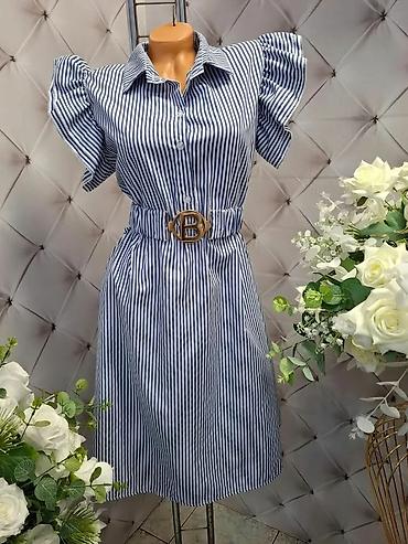 Desigual haljina ,V izreza, pamuk, M velicina, teget boje sa sarenim dezenom sljokice i vez, poznatih i prepoznatljivih sara za Desigual. Nosena dva puta i odlicno ocuvana. Na ledjima i na rubu dol...