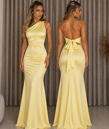 Elegantna midi haljina (odgovara veličini S/M) jednom nošena. - Materijal: glatka satenska tkanina sa suptilnim sjajem i finim šljokičastim odsjajem. - Kroj: ženstvena silueta sa strukom naglašeni...
