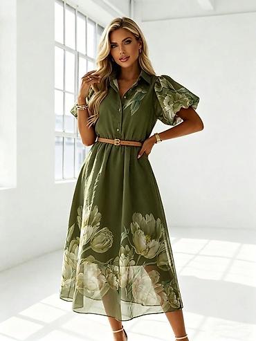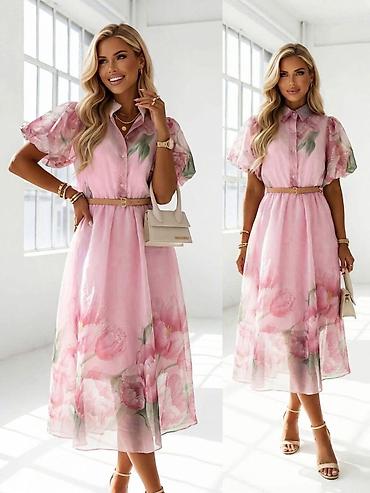 Duga letnja haljina sa tropskim printom - Model: maxi haljina na