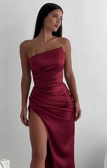 🎗️ Haljina – 3100 din - Elegantna duga satenska haljina sa prorezom