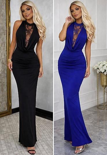 Crna haljina sa dubokim dekolteom. Duzina i sirina na slikama