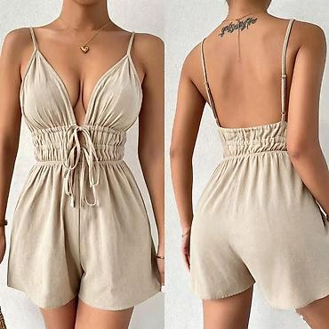 Elegantni ženski kombinezon bez rukava, sa dubokim preklopnim dekolteom i vezivanjem u struku koje naglašava figuru. Ravne, široke nogavice vizuelno izdužuju siluetu i pružaju udobnost pri kretanju...