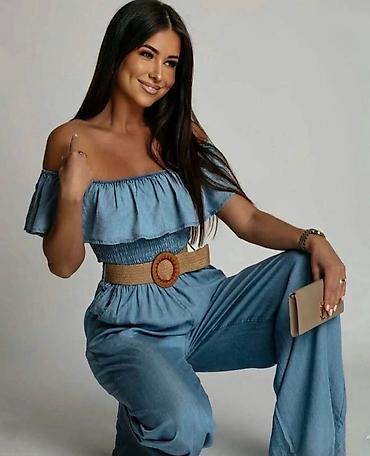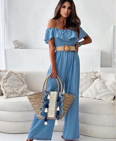 ✅Denim kombinezon sa širokim nogavicama i skulpturalnom pelerine-ramenom siluetom. ✅4300 din S M L