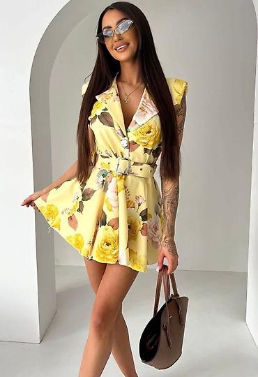 Žuti mini kombinezon bez bretela + bela torbica sa zlatnim lancem. Nošeno jednom. ...