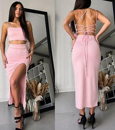 Komlet gornji deo bliza i donji deo zvonarice sa prorezom.Sa elastinom. roza,pink,borda,crna,tamno plava,bez,zuta,siva,svetlo siva,svetlo plava,kapucino XXS,XS,S,M,L,XL,2XL,3XL,4XL,5XL 1000 NOVO AK...