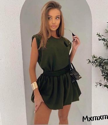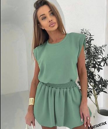 Elegantni ženski komplet – tunika bez rukava + široke pantalone -