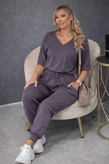 Dvodeleni komplet – svetloplavi - Model: široke pantalone sa elastičnim pojasom + gornji deo kratkih rukava sa okruglim izrezom - Boja: nežno svetloplava (pastel) - Kroj: ležeran, ravne nogavice, ...