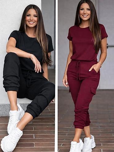 Ženski komplet – široke pantalone i majica s V‑izrezom - Dvodijelni