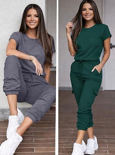 Ženski komplet – široke pantalone i majica s V‑izrezom - Dvodijelni set: ravno krojene, široke pantalone visokog struka sa elastičnom trakom + kratkorukavna majica opuštenog kroja s V‑izrezom. - M...