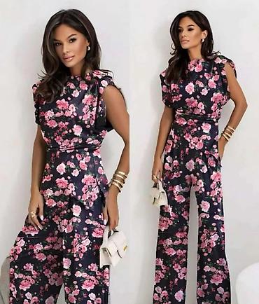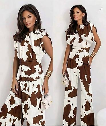 Dvodijelni ženski komplet – svetloplave boje - Gornji deo: skraćeni sako sa reverima, jednoredno kopčanje jednim crnim dugmetom, lagana postava u istoj nijansi, dekorativni džepić na grudima. Na m...