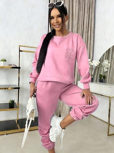 Dvodijelni komplet u boji svijetloružičaste: kratki sako i mini suknja