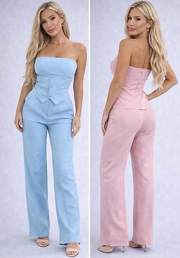 Dvodijelni komplet u boji svijetloružičaste: kratki sako i mini suknja