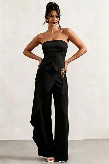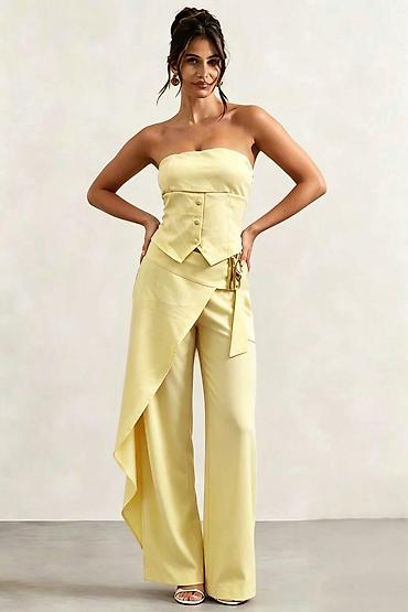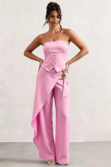 Damski komplet – plisirana majica na bretele i široke pantalone uni