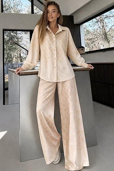 Damski komplet bez rukava – prsluk/košulja i široke pantalone sa