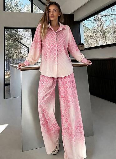 Komplet: Pantalone i Bluza.Ženske letnje pantalone sa diskretnim cvetnim dezenom - Kroj: ravne nogavice, dužina do članka - Struk: klasičan, sa kopčanjem na rajsferšlus i dugme - Džepovi: bočni uš...