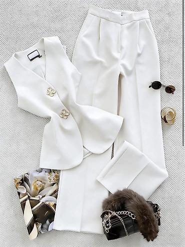Dvodijelni komplet u boji svijetloružičaste: kratki sako i mini suknja