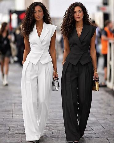 🔥Elegantna ženska komplet kombinacija – bluza i pantalone u crnoj boji. ✅3000 din