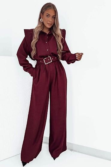 Damski komplet – bluza i pantalone sa širokim nogavicama - Elegantna