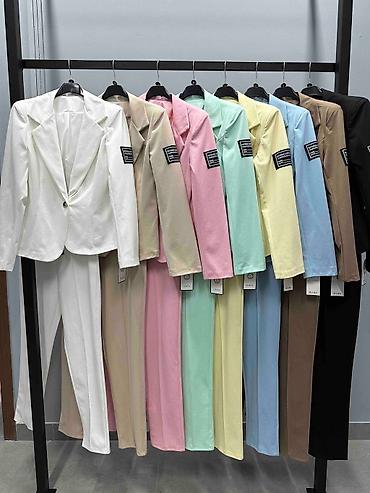 Dvodijelni komplet u boji svijetloružičaste: kratki sako i mini suknja