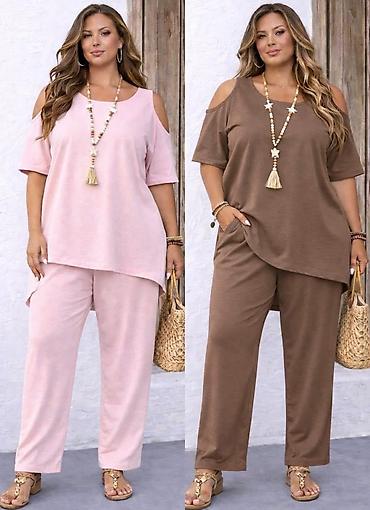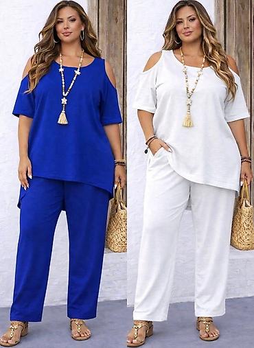 Elegantni ženski komplet – tunika bez rukava + široke pantalone -