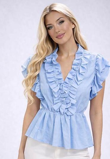 Ženska košulja Calliope, veličina XS. - Model: klasična košulja na kopčanje sprijeda - Dizajn: svetloplave i bele vertikalne pruge, unutrašnja strana kragne sa diskretnim horizontalnim prugama - M...