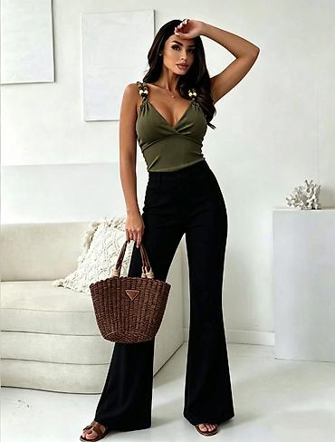 Ženska letnja majica/top na bretele – Aodaie, veličina S - Boja: svetlo maslinasto zelena - Materijal: kombinacija lagane tkanine i heklanog/pletenog dela - Dizajn: tanke podesive bretele, kopčanj...