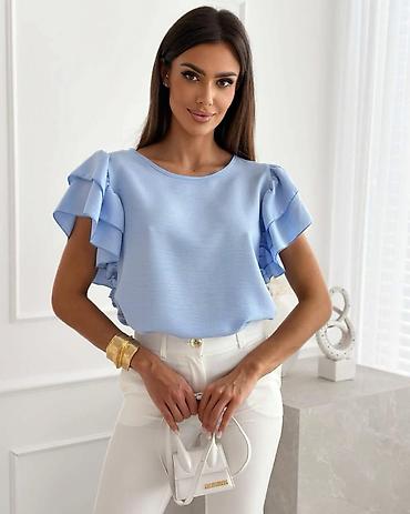 • Ženska majica na kratke rukave – plava sa sitnim belim tufnama. -