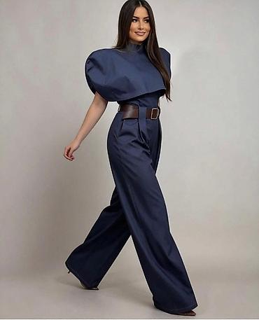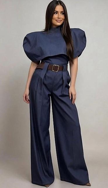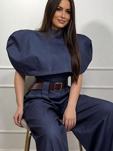 Elegantna ženska kombinacija – košulja sa kratkim rukavima i široke pantalone visokog struka. Košulja: - Klasični kroj sa izraženim velikim kragnom - Kratki, blago pušteni rukavi sa epolettama i d...