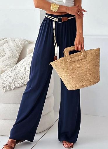 Ženske široke pantalone sa prugama – lagan, ležeran kroj - Model: ravne, široke nogavice sa visokim strukom - Struk: elastičan po celom obimu + podesiv učkur od pletenog kanapa - Džepovi: bočni uš...