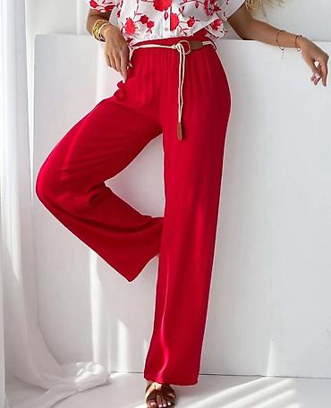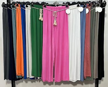 Zvonarice pantalone dubok pojas koji se podvija sa elastinom.Borda,crvena,pink,bez,krem bela,svetlo siva,tamno siva,plava,tamno zuta,nezno zuta,svetlo oker.XXS,XS,S,M,L,XL,2XL,3XL,4XL,5XL 1000 NOVO
