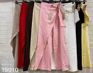 Ženske pantalone – 2 para - Model: ravne, lagano šire nogavice; visoki struk. - Boje: pastelno plava i pastelno žuta. - Materijal: tanak, gladak i prijatan za kožu (pogodno za proleće/leto). - Poj...