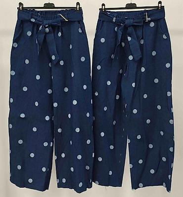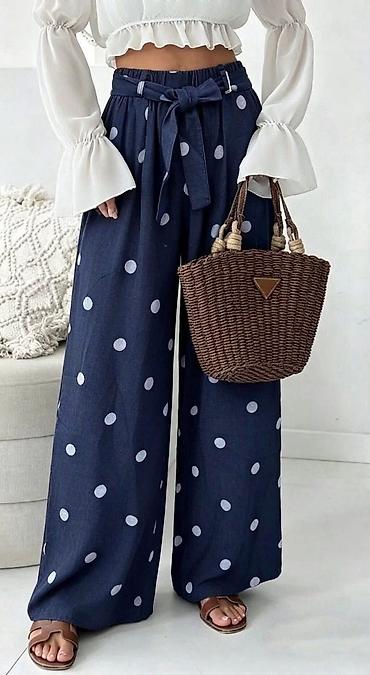 Ženske pantalone širokih nogavica duzina do poda. Visoki struk sa pojasom/trakom za vezivanje; veoma široke nogavice koje elegantno padaju i daju efekat suknje. -Dizajn: više uzoraka u crno‑beloj i...