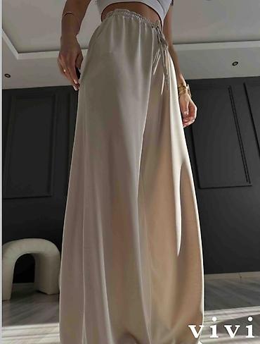 Ženske pantalone širokih nogavica duzina do poda. Visoki struk sa