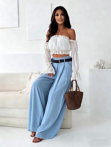 Ženske široke lepršave pantalone sa visokim strukom - Kroj: izrazito