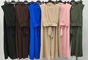 Komplet široke pantalone visokog struka na lastiz i bocnim dzepovima sa ravim stepom po sredini nogavica i majica siroka kratkih rukava do lakta. Duže nogavice 120cm. Pamuk kvalitetan sa elastinom....