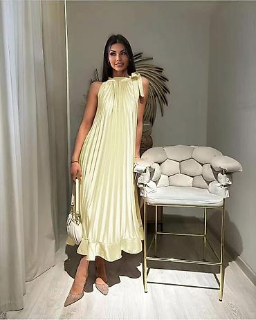 Haljina na preklop sa printom u crno-belim tačkama. - Kroj: midi dužina, struk naglašen kaišem u istom materijalu; gornji deo na preklop sa reverima. - Rukavi: kratki, blago široki. - Kopčanje: sk...