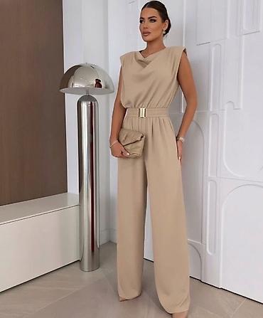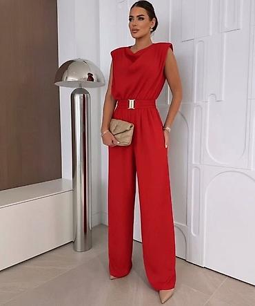 Elegantni ženski kombinezon bez rukava, sa dubokim preklopnim dekolteom i vezivanjem u struku koje naglašava figuru. Ravne, široke nogavice vizuelno izdužuju siluetu i pružaju udobnost pri kretanju...