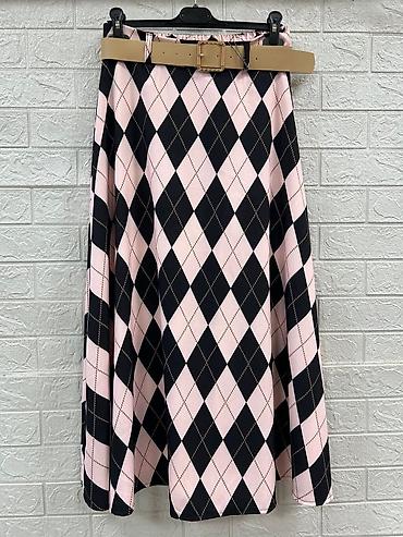 Pletena suknja sa floralnim žakard dezenom - Model: A-kroja, blago se širi prema dnu - Materijal: meka, pletena tkanina sa žakard motivima - Boje/dezen: dominantno ciklama/roze sa lila i krem žuti...