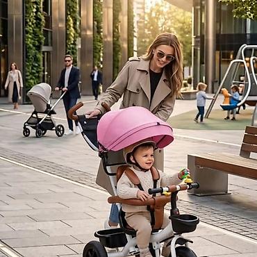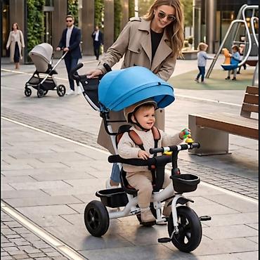 Dečiji tricikl sa roditeljskom drškom i tendom - Multifunkcionalan