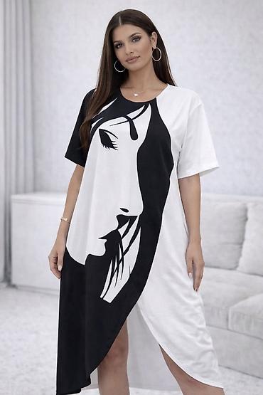Ženska elegantna tunika/haljina sa preklopom - Kroj: komotna A-linija sa dvostrukim asimetričnim slojevima napred i dužim zadnjim delom; lepo pada i vizuelno izdužuje figuru - Rukavi: 3/4 dužine s...