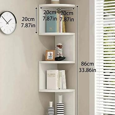 Idealna je za iskorišćavanje prostora u uglu sobe i odlična za odlaganje knjiga, dekoracija, igračaka, biljaka ili ramova sa slikama.